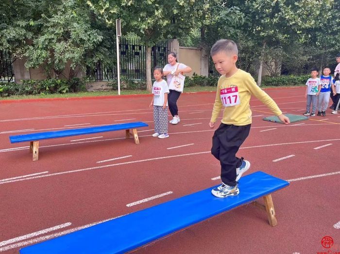 “万里长征第一步”“巧渡金沙江”“飞夺泸定桥”……体育节期间,学校根据课标,立足课堂,设计符合一年级学情的情境性项目化内容。以“健体筑梦强国有我”为主题,用闯关的形式对学生的各项能力进行练习。